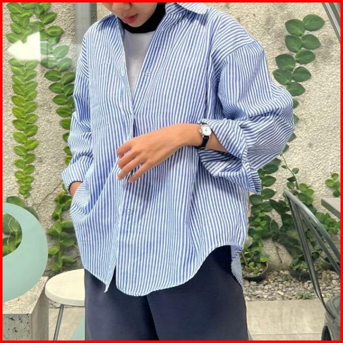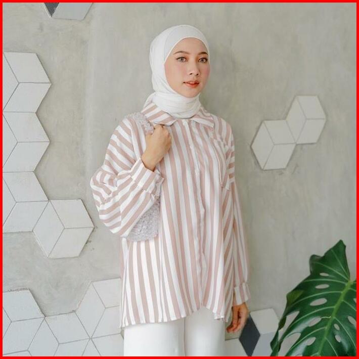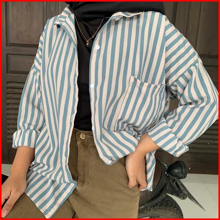 Kemeja Salur Wanita Strippy Oversize Shirt Kemeja Wanita Stripe