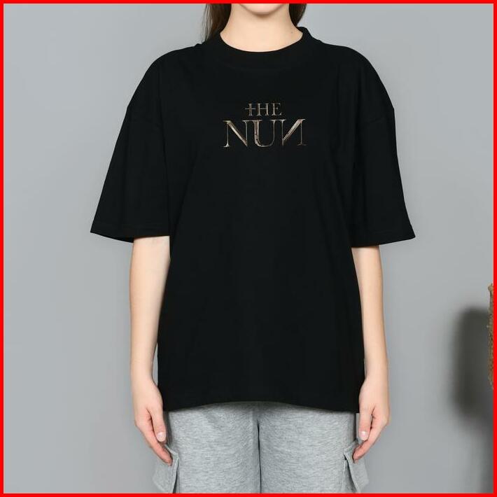Oversized T-shirt Gvrl The Nun Kaos Oversize Unisex Cotton Combat 24s Tebal Baju Distro Pria Dan Wanita Valak Hitam Kain