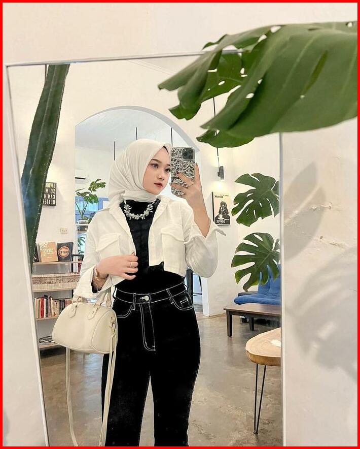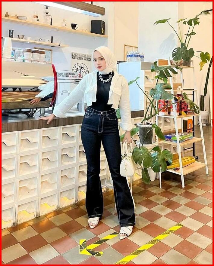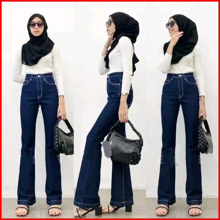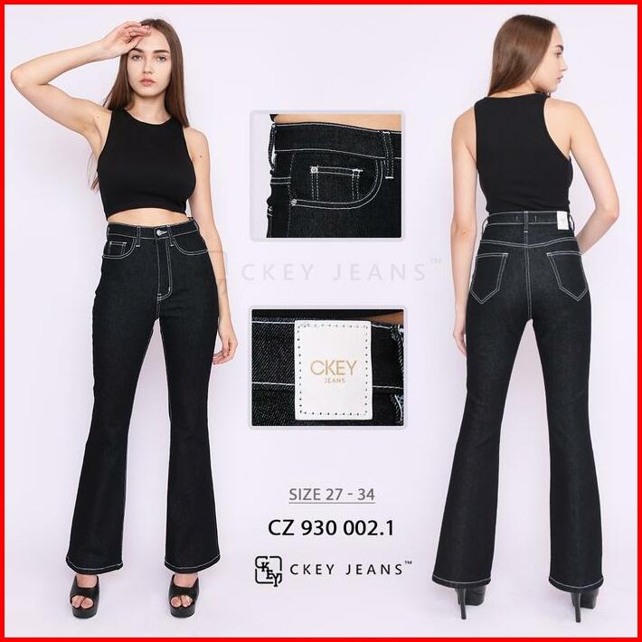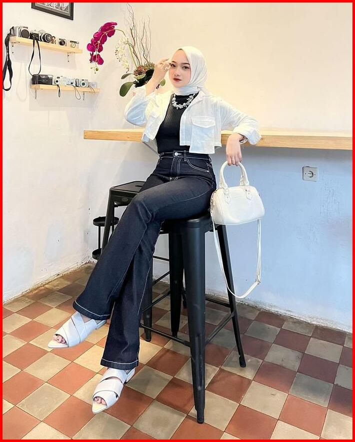 Camila Cutbray Jeans Hitam Benang Putih Denim Nyaman Skinny Wanita Celana Panjang Cewek