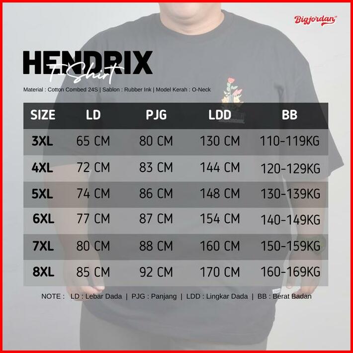 Bigjordan Jumbo Hendrix Kaos Jumbo Pria Xxxxl T Shirt Big Size Pria Kaos Oversize Baju Ukuran Besar Xxxl 4xl 5xl 6xl 7xl