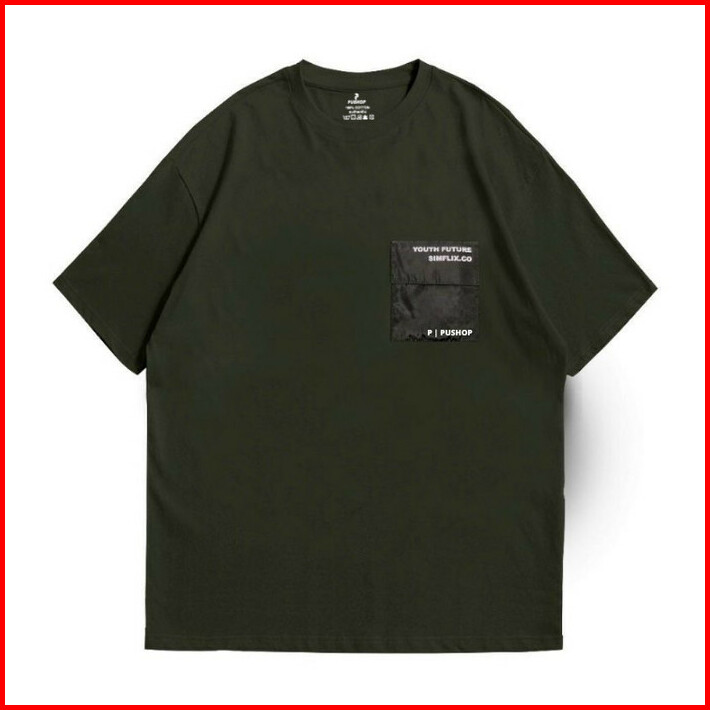 Pushop T-shirt Oversize Yfs Pocket Kaos Pria Dan Wanita Cotton Combed