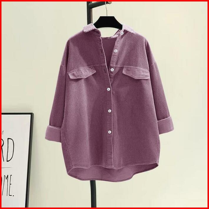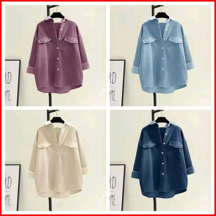 Corduroy Kemeja Wanita Oversize Bahan Tebal Basic Brisia Shirt Kemeja Lengan Panjang