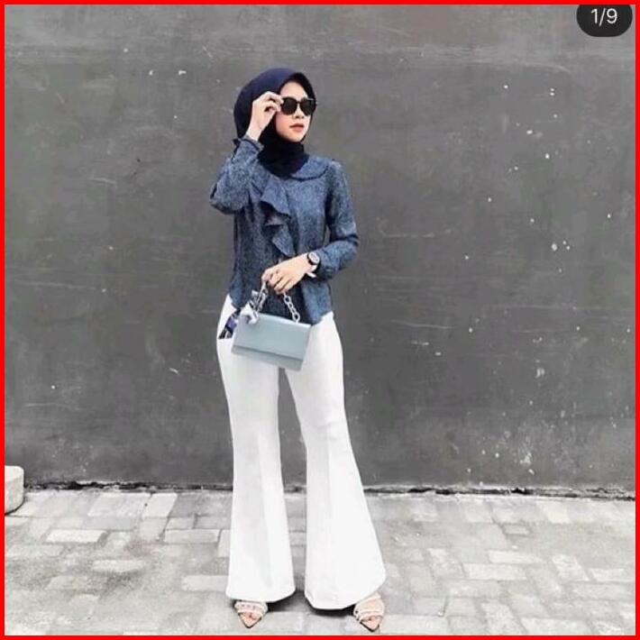 Cutbray Scuba Melar Celana Wanita Panjang Hitam Casual Dewasa Cewek Karet Formal Kantor Nyaman Kulot Stretch Kerja Putih