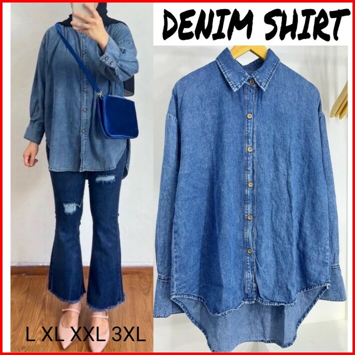 Sjm Nando Kemeja Denim Premium Oversize Wanita Lengan Panjang Kekinian