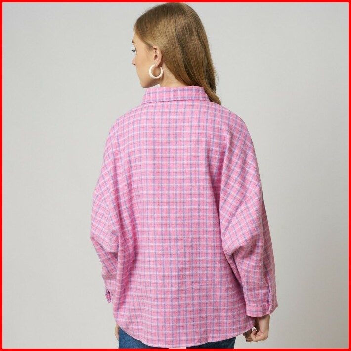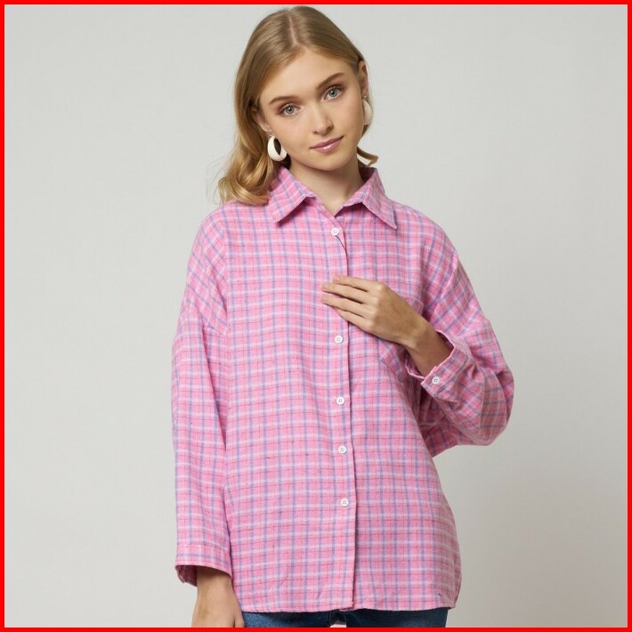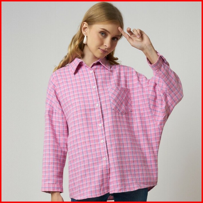 Monellina 601199 Kemeja Flanel Oversize Wanita Batwing Lengan Panjang
