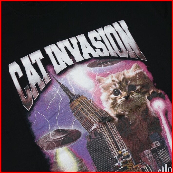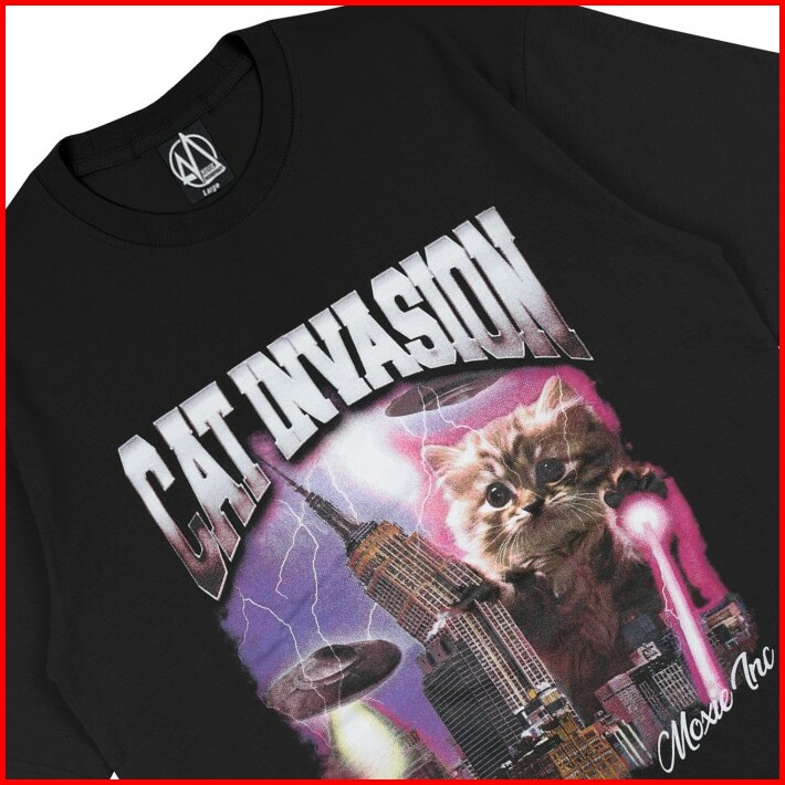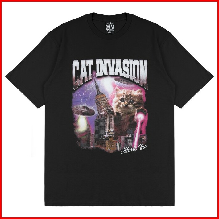 Moxie Kaos Oversize Cat Invasion Unisex Katun Combed 24s Hitam T-shirt
