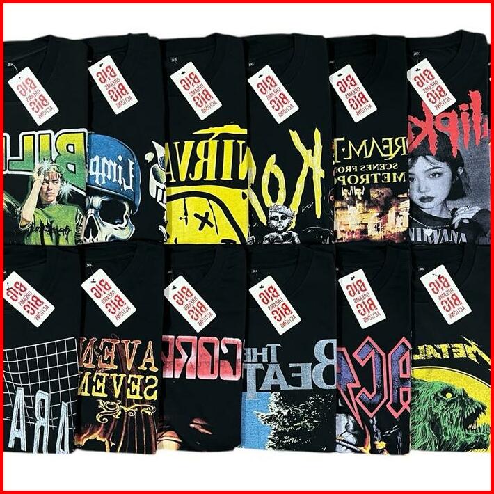 3pcs Superjumbo Xxxl Motif Band Random Kaos Distro Oversize Bahan Semi Katun Lengan Pendek