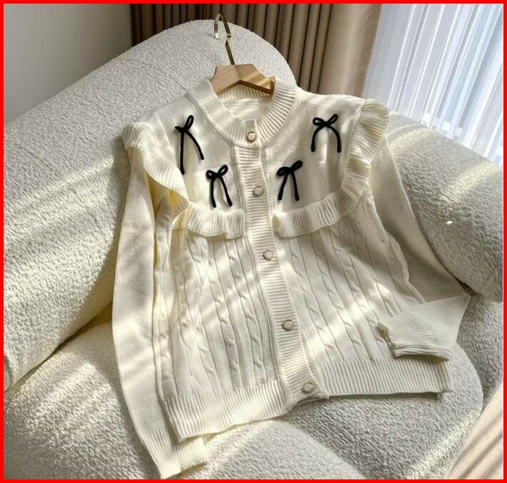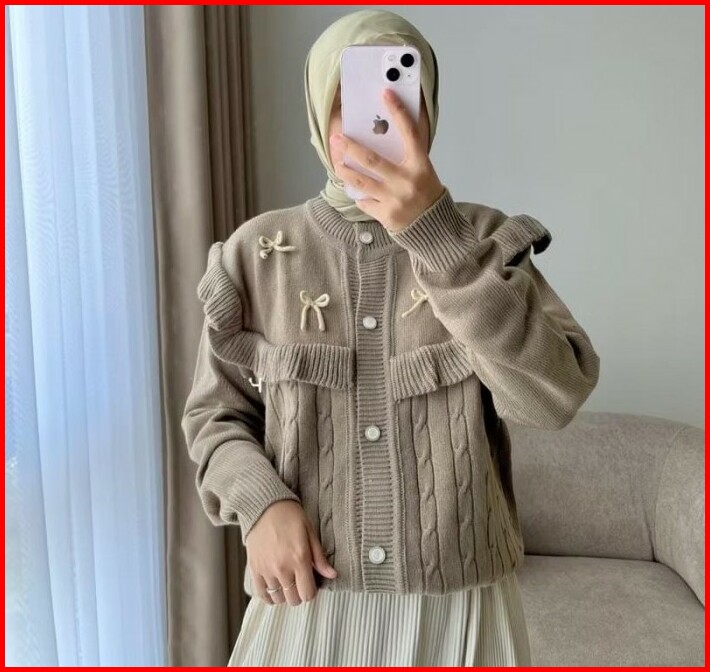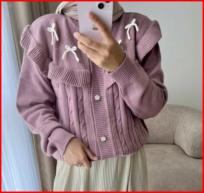 Darika Ruffle Cardy Cardigan Rajut Ruffle Pita Korean Look Cardigan Pita