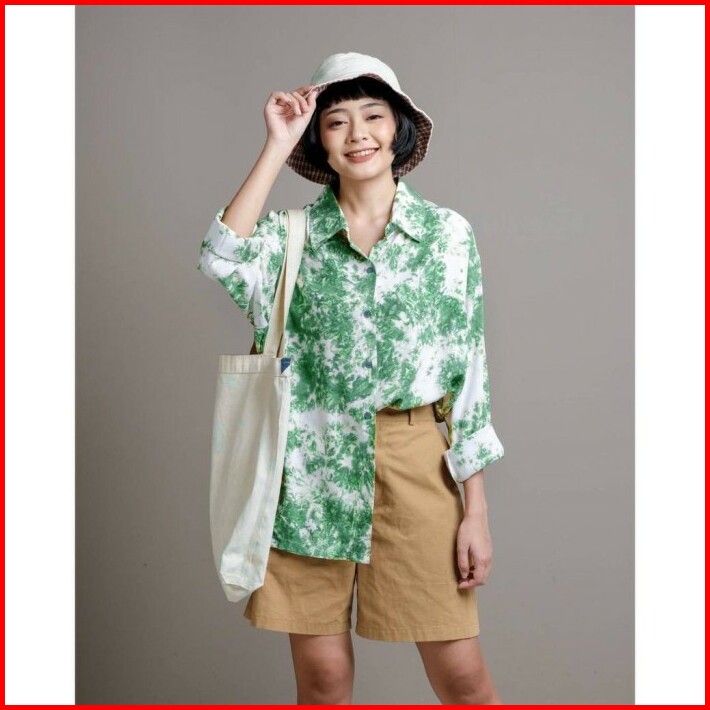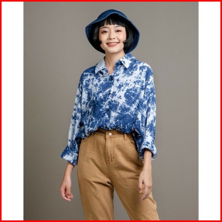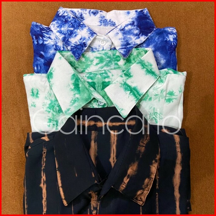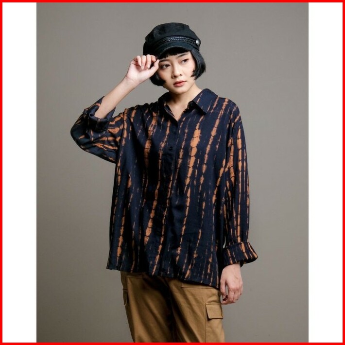 Kemeja Atasan Tie Dye Top Shirt Wanita Rayon Lengan Panjang Oversize