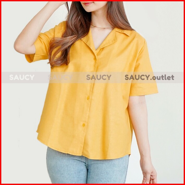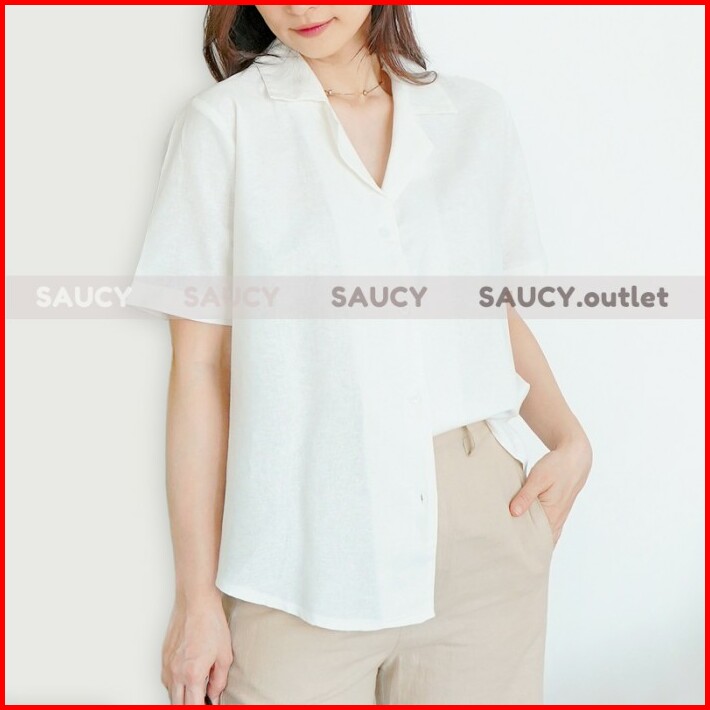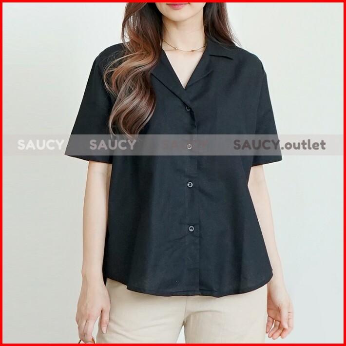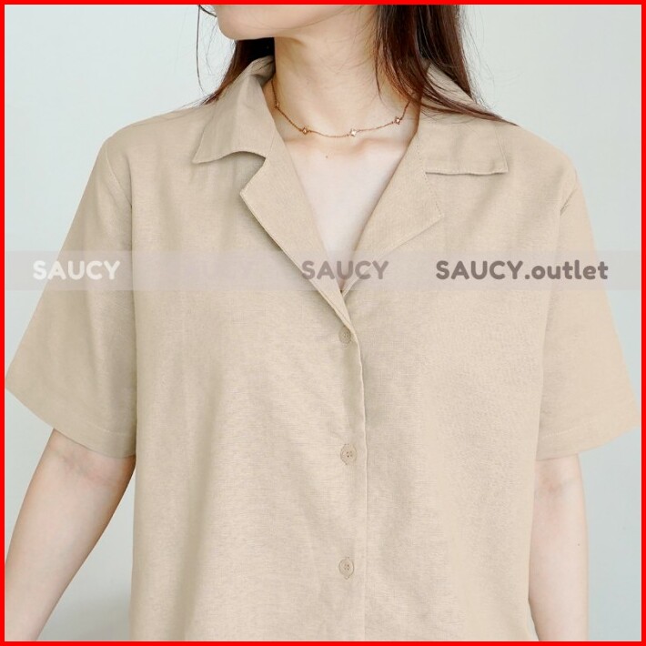 Kemeja Linen Oversize Casual Wanita Polos Lengan Pendek