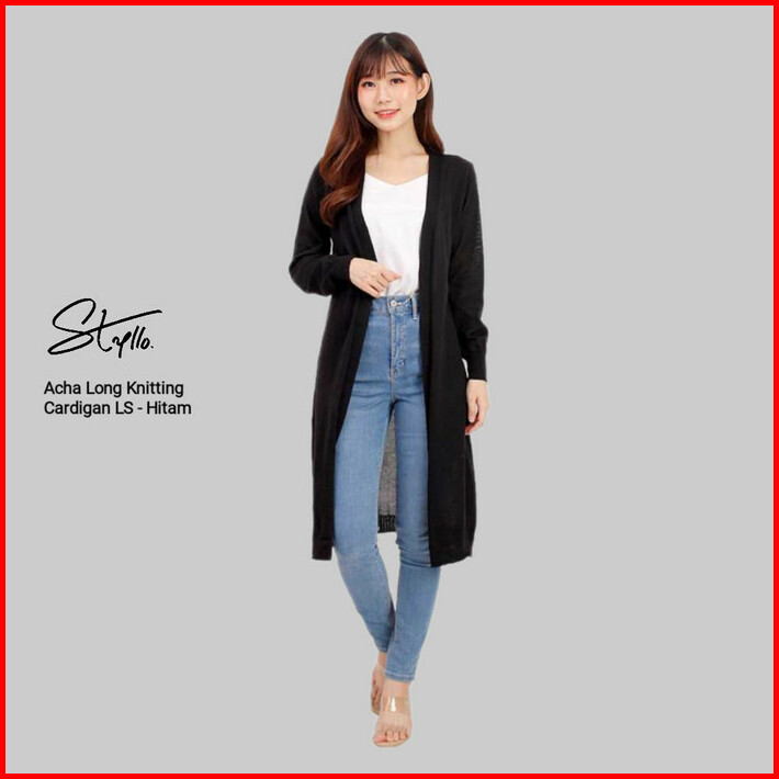 Cardigan Wanita Long Coat Rajut Panjang Model Basic Polos Black Hitam