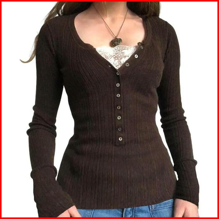 Heysoul Kaos Rajut Y2k Style Lengan Panjang Atasan Baju Wanita Cewek Kekinian Knitwear Top Kardigan Cardigan Crop Dewasa
