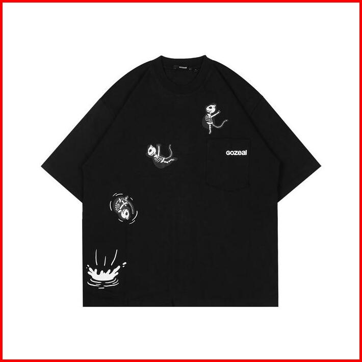 Gozeal Tees Oversize Free Jump Kaos Oversize Kantong Kaos Pria Wanita Unisex Kaos Katun Bermotif