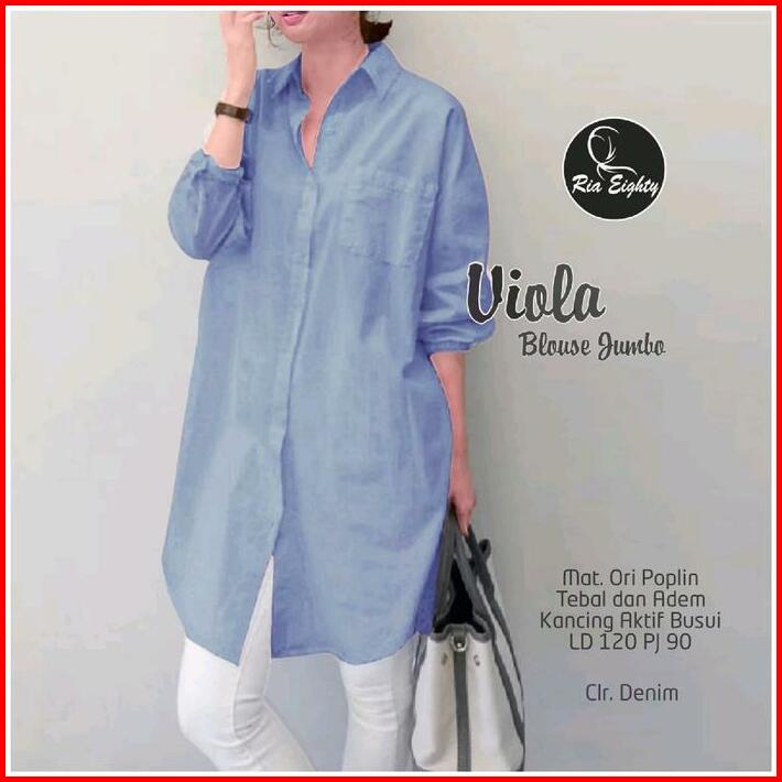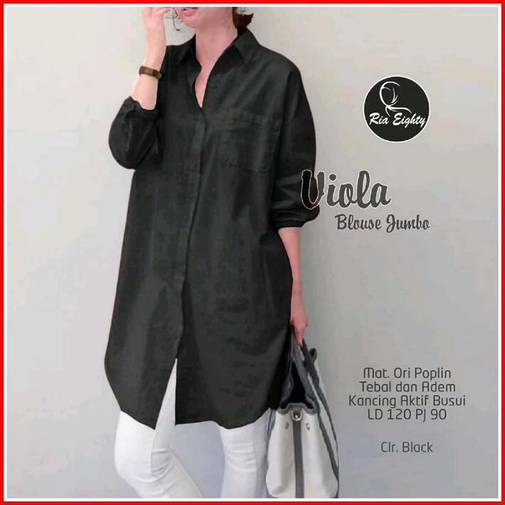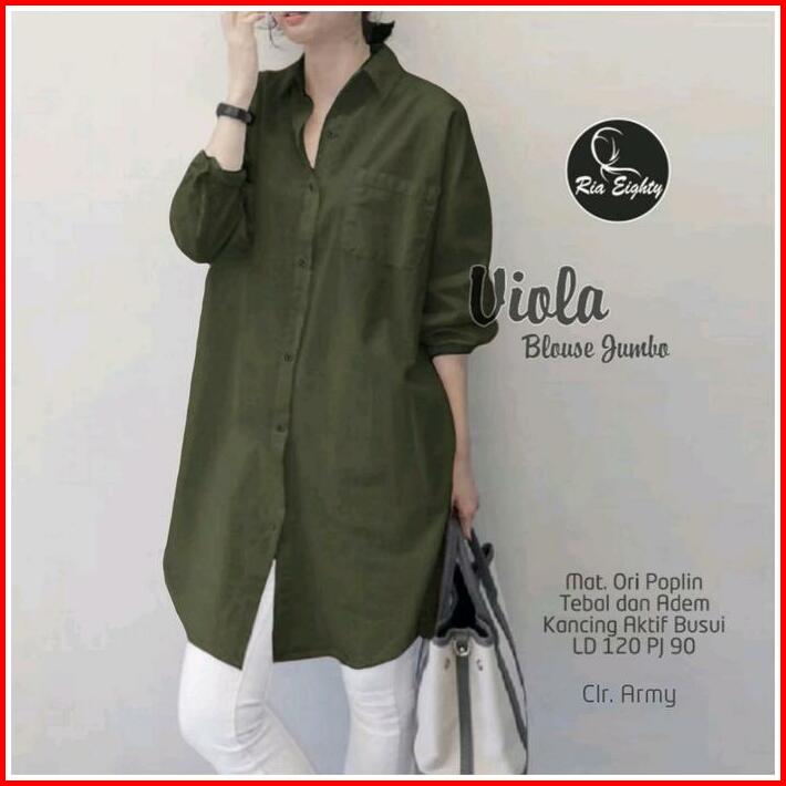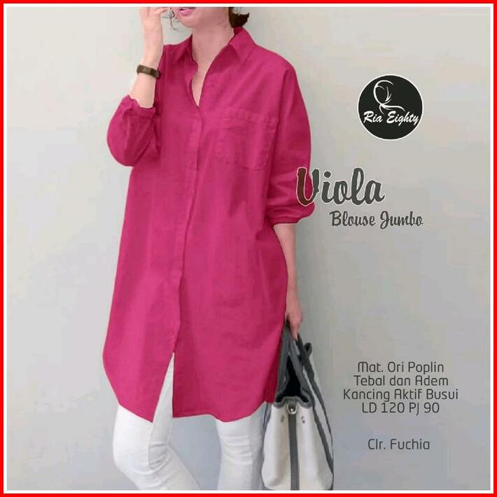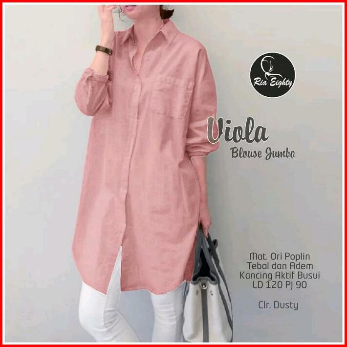 Busana Baju Atasan Wanita Kemeja Panjang Tunik Katun Poplin Ld 120 Jumbo Oversize Mewah Outfit Daily Kekinian