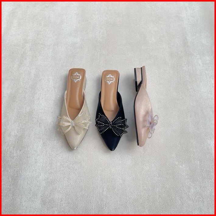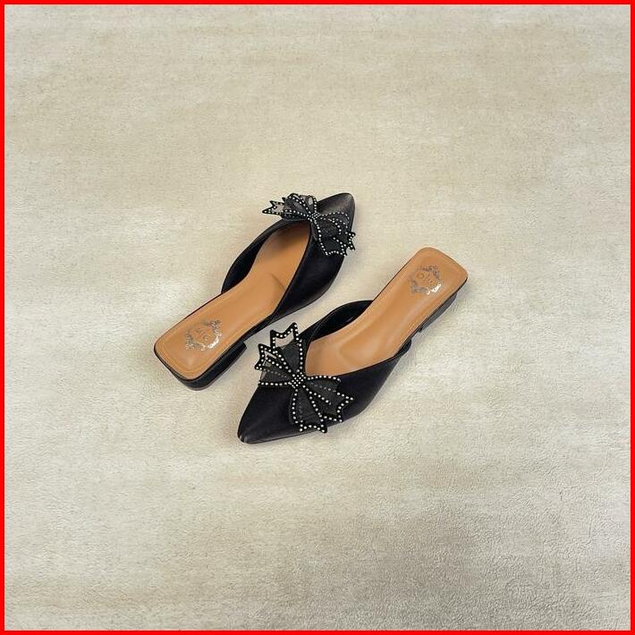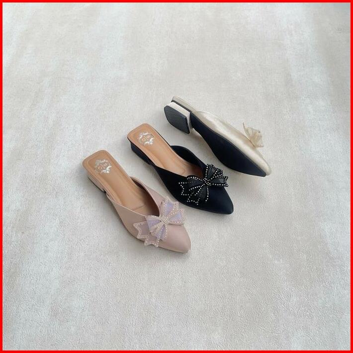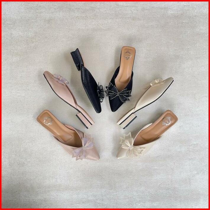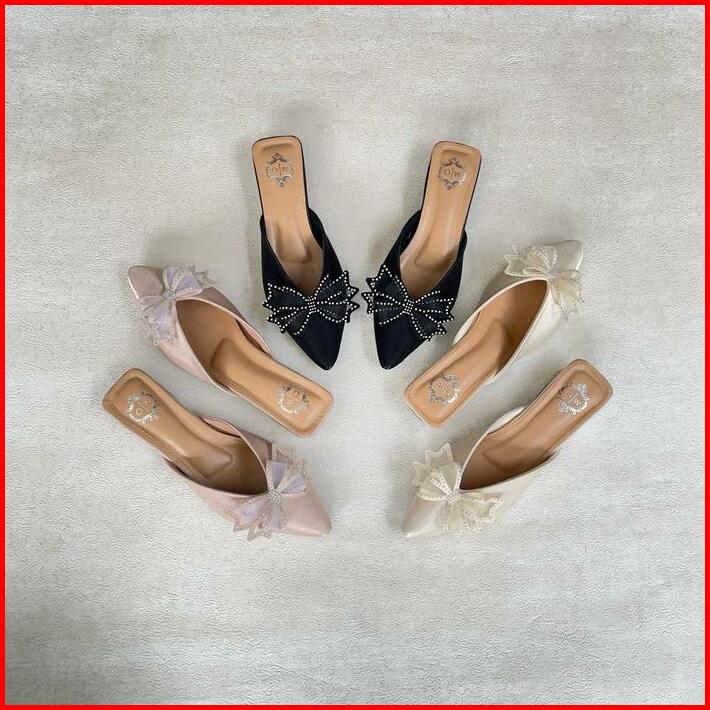 Sepatu Wanita Mules Enzo Faduzzi Sandal Selop Pesta Nylon Polos Slip On Hak Rendah Shoes Sendal Fleksibel Elegan Slip Re