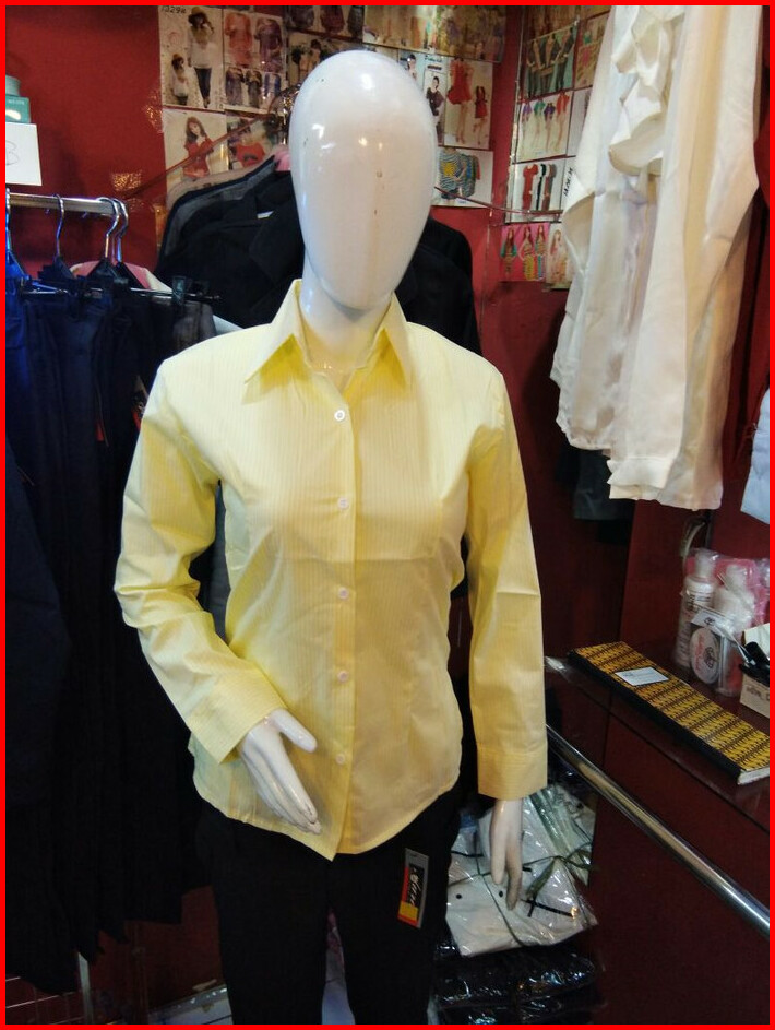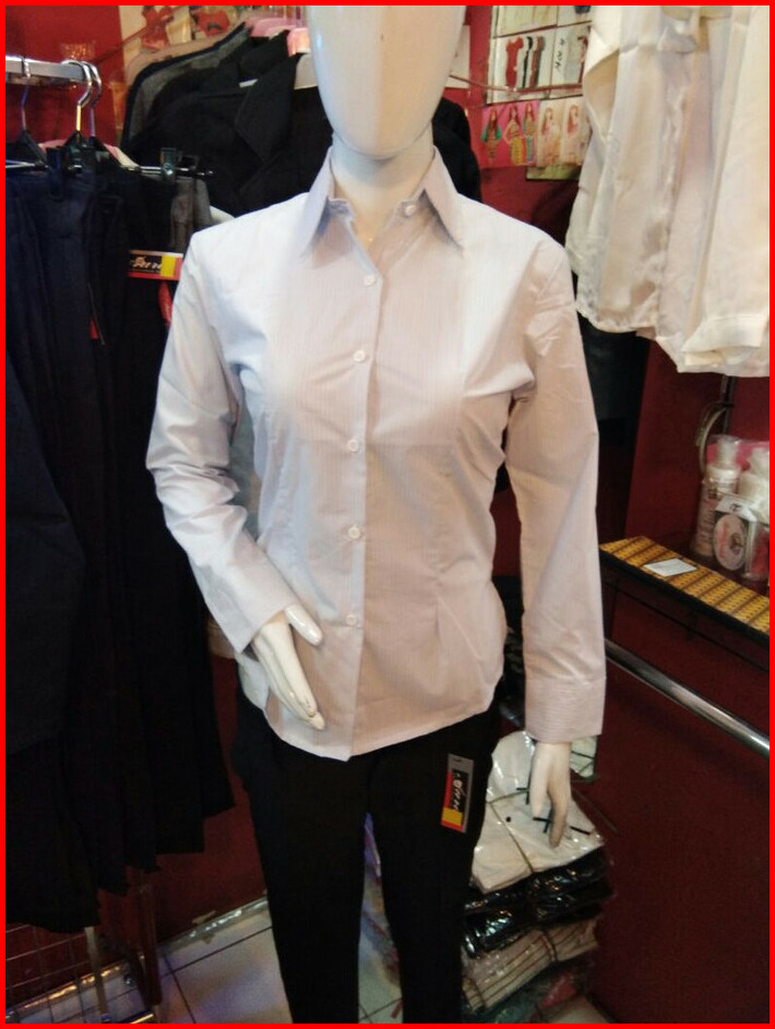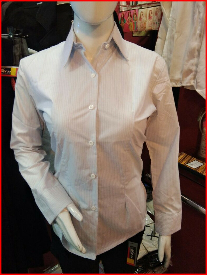 Kemeja Kerja Panjang Wanita Salur Bahan Katun Stret