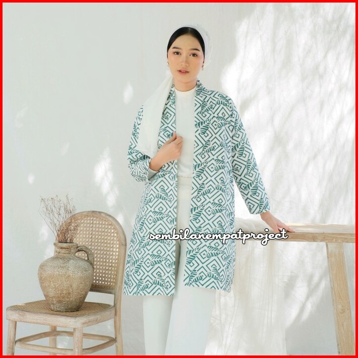 Indana Long Outer Outer Batik Wanita Cardigan Batik Motif Daun