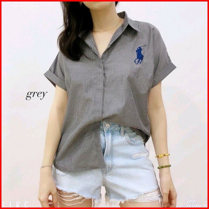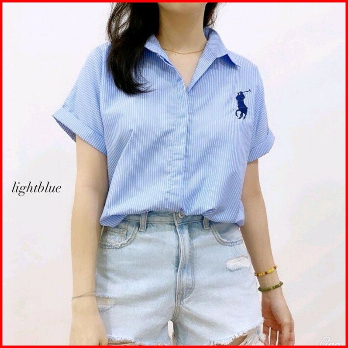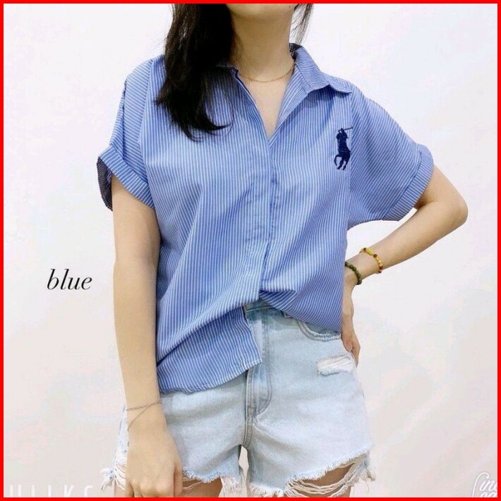 Kemeja Wanita Salur Poloo Bordir Lengan Pendek