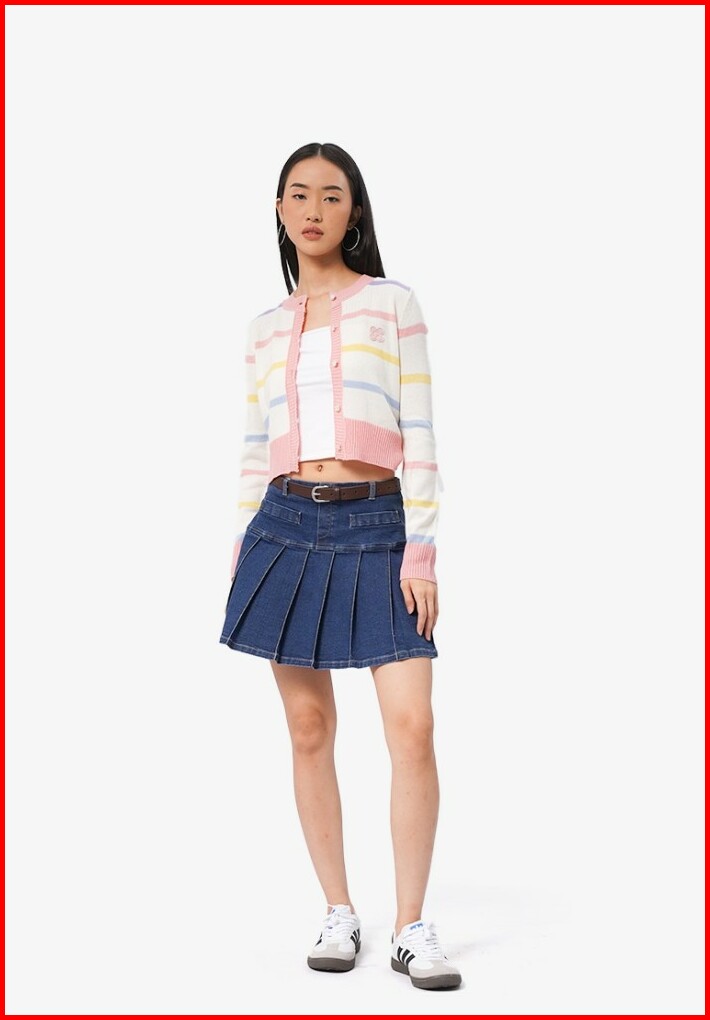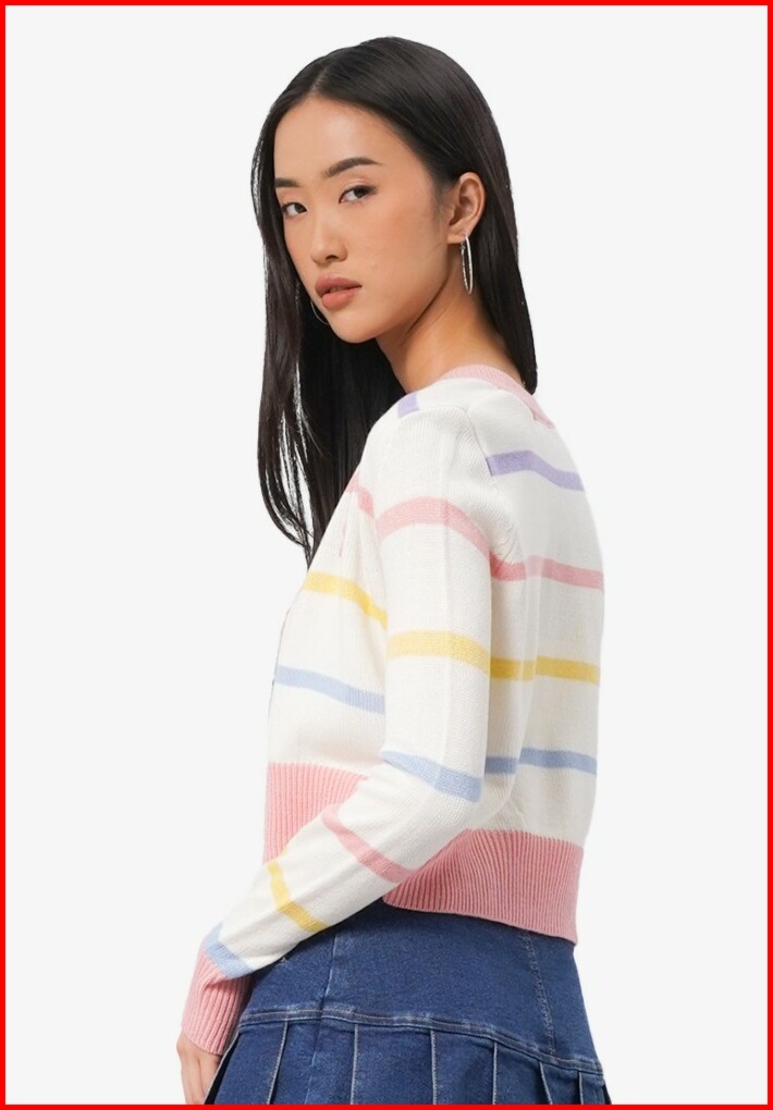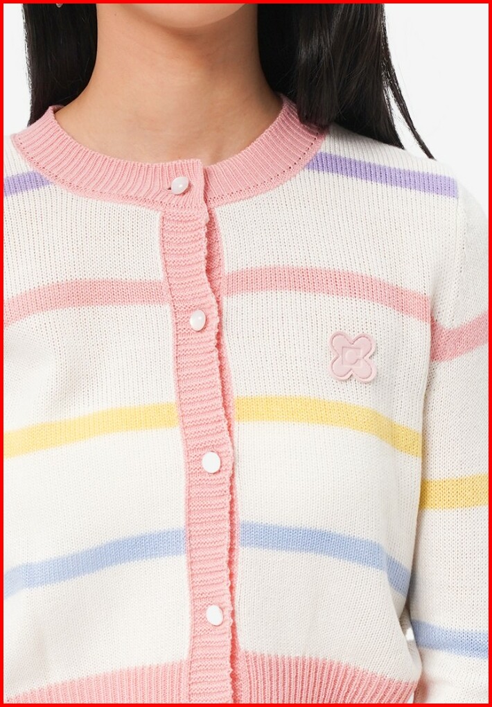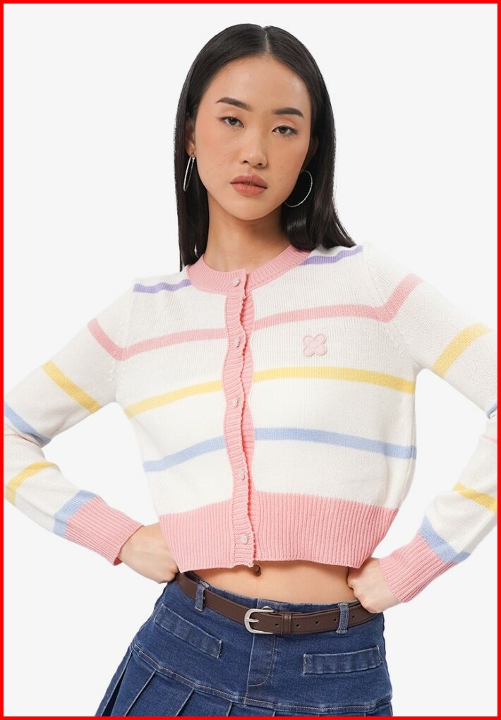 Colorbox Striped Long Sleeve Crop Cardigan I-cogkey224k081 Off White