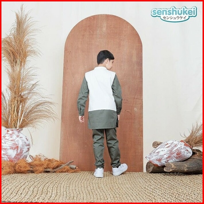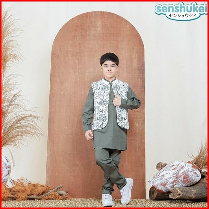 8-13th Setelan Baju Koko India Turki Anak Hijau Botol Senshukei 49 F