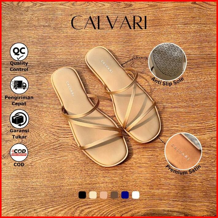 Sandal Wanita Daisy Tali Teplek Kasual Terbaru Sendal Kekinian By Calvari Satin Sutra Strap 2 Braided Anti-slip Tpr Rubb