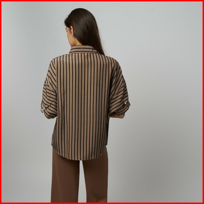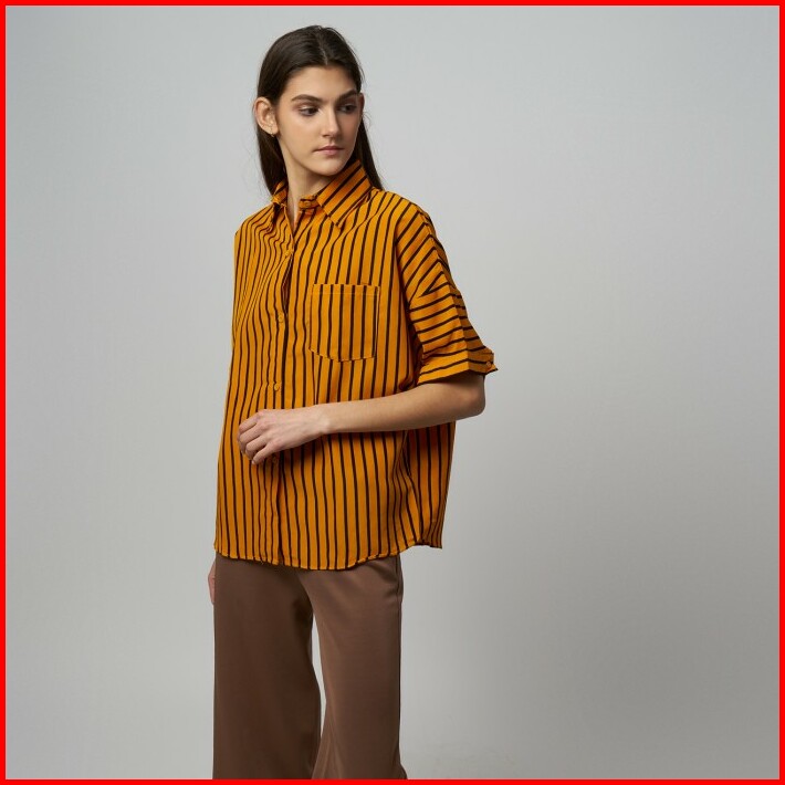 Monellina Valerie Kemeja Oversize Wanita Batwing Lengan Pendek Garis