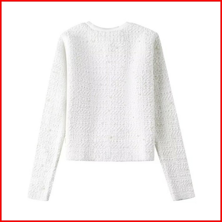 75005 White Classy Pearl Knit Cardigan Cardigan Wanita