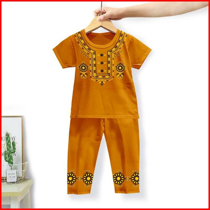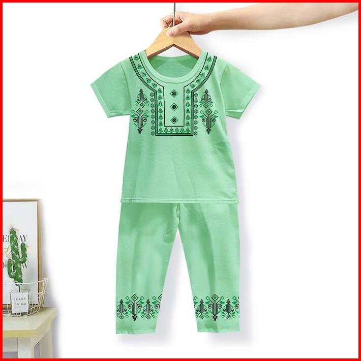 Setelan Baju Anak Laki-laki Celana Panjang Fashion Pakaian Baju Koko Anak Laki Laki Katun Cowok Muslim Peci Kurta Turki