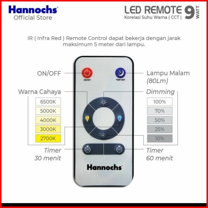 Hannochs Led Remote Ctt Lampu 9w Remot Lampu Tidur 9watt Led Bulb 3in1