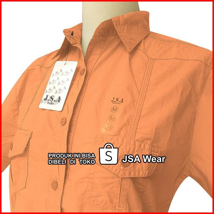 Kemeja Wanita Lengan Panjang Merek Jsa Tactical Pdl Pdh Seragam Oren Baju Casual Atasan Variasi Kantong Kancing Katun Sa
