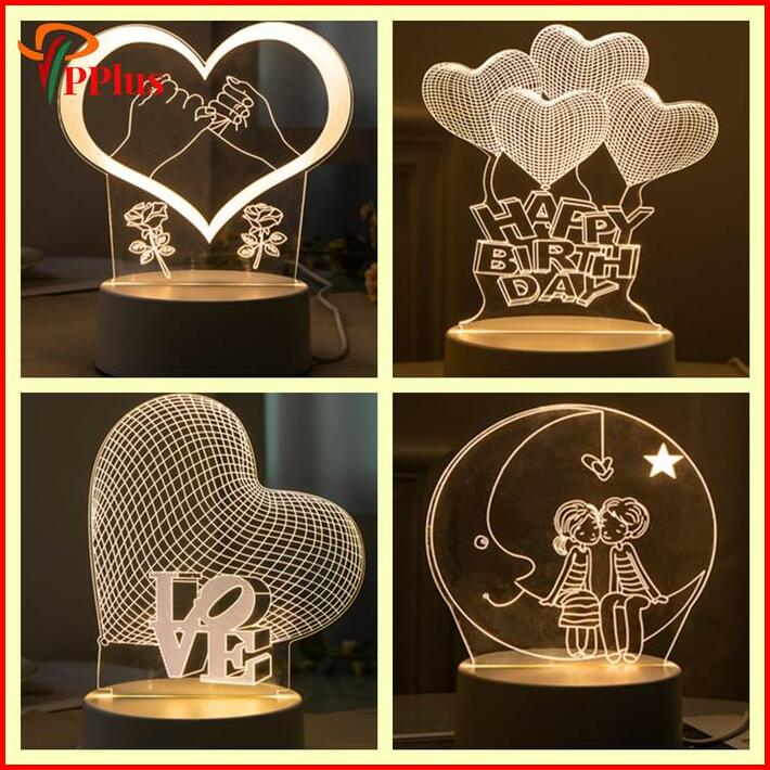 Pplus Bentuk Hati Lampu Akrilik 3d Malam Led Hangatwarna Keren Lampu Kamar Aesthetic Steker Sakelar Lampu Tidur Aestheti