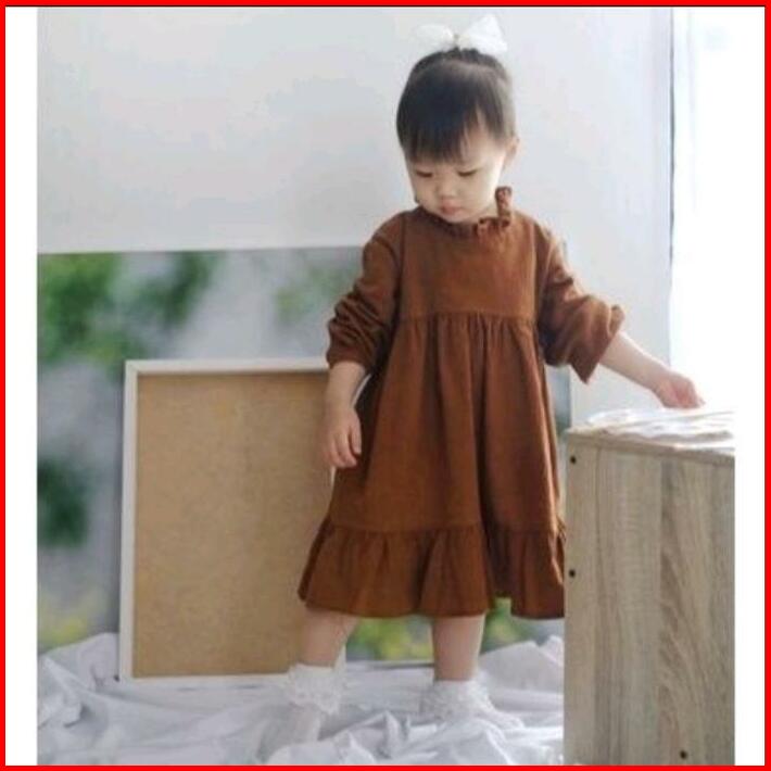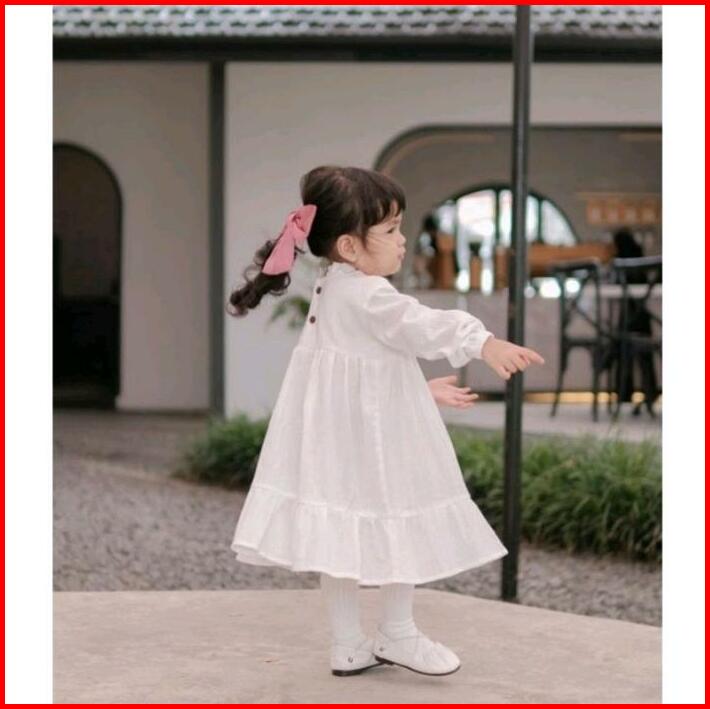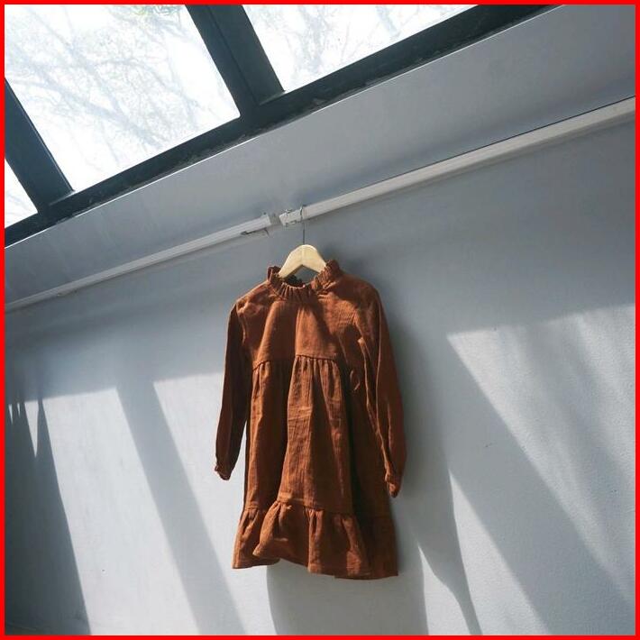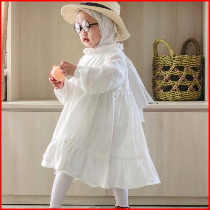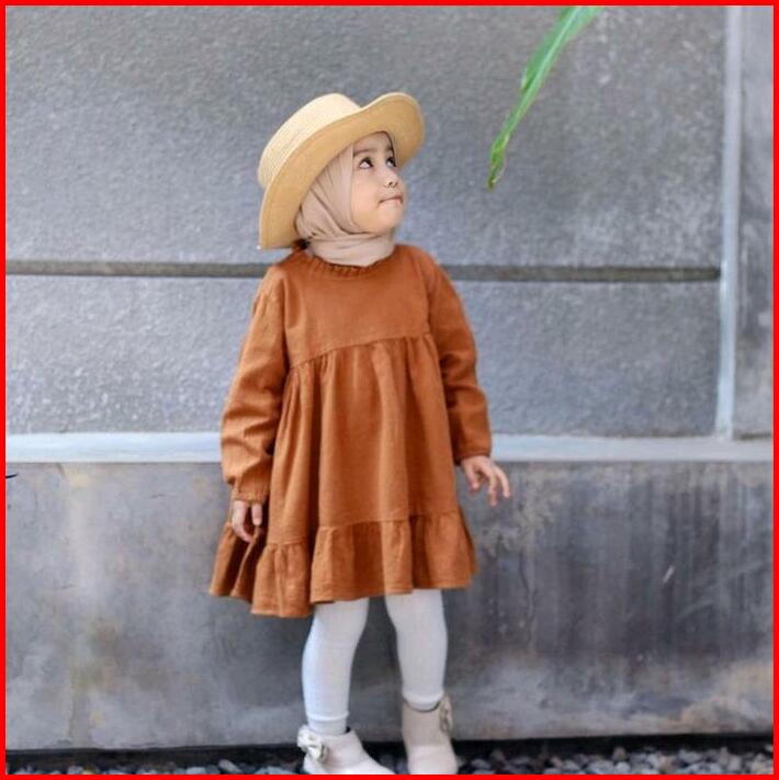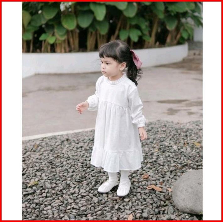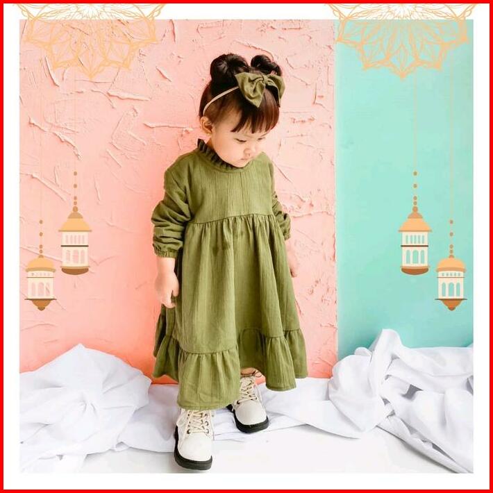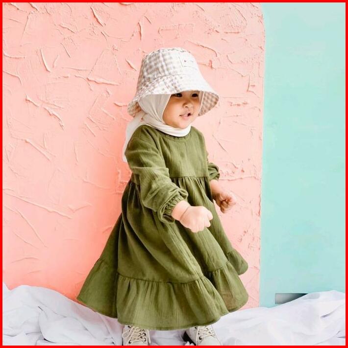 Dearrussell Fhilia Long Dress Anak Lengan Panjang Baju Lebaran Gamis Korean Premium Linen Crinkle