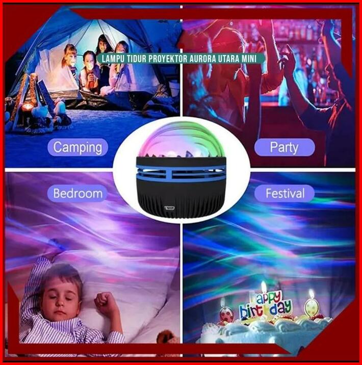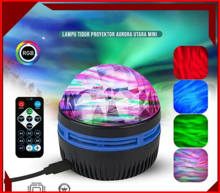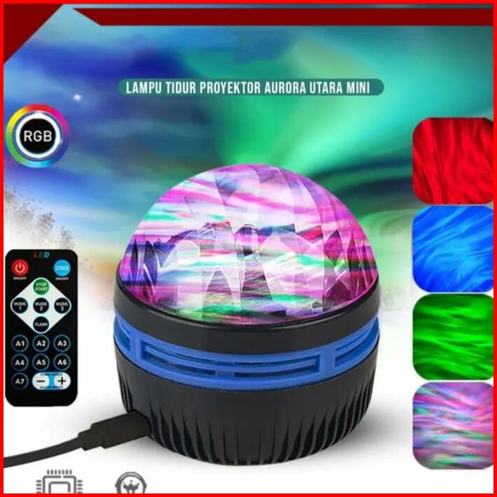 Lampu Proyektor Aurora Utara Mini Lampu Galaksi Langit Aurora Lampu Tidur Lampu Disco Remote Usb Hitam