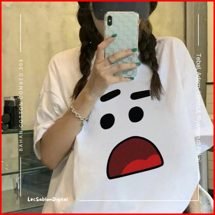 Kaos Oversize Face Shock Cartoon Pria Dan Wanita Japan Korea Combed 24s