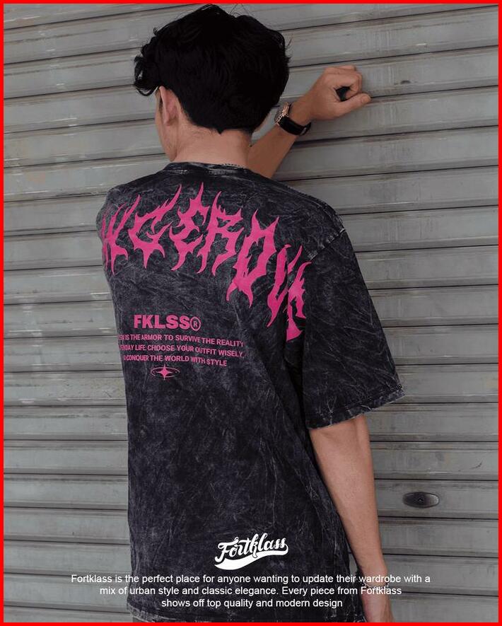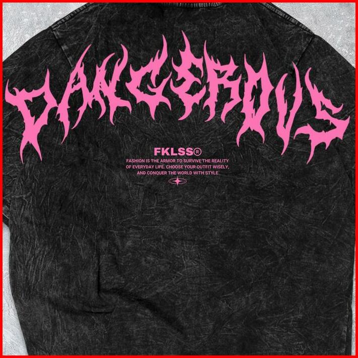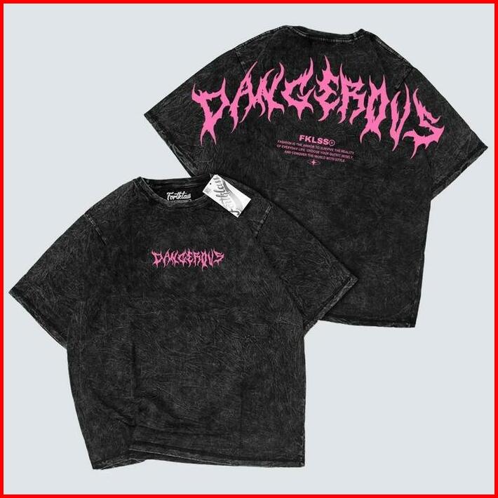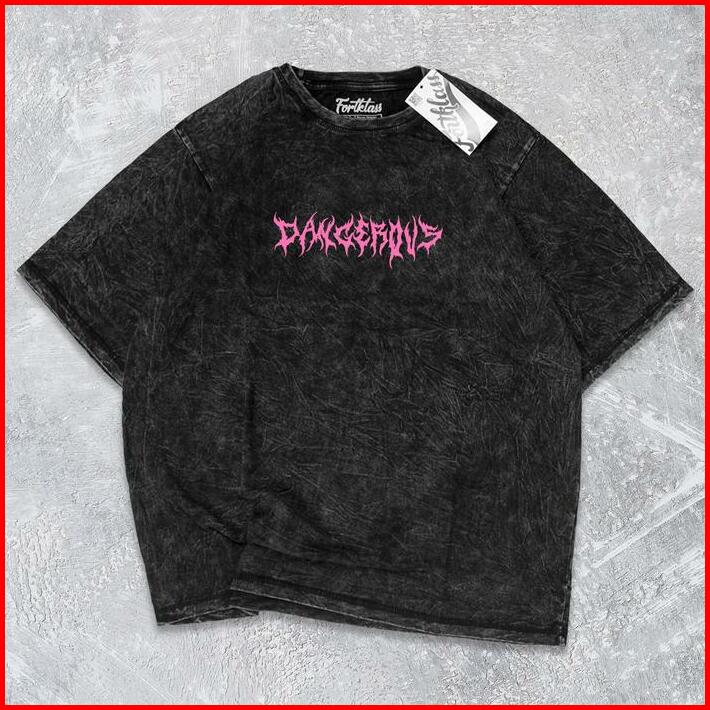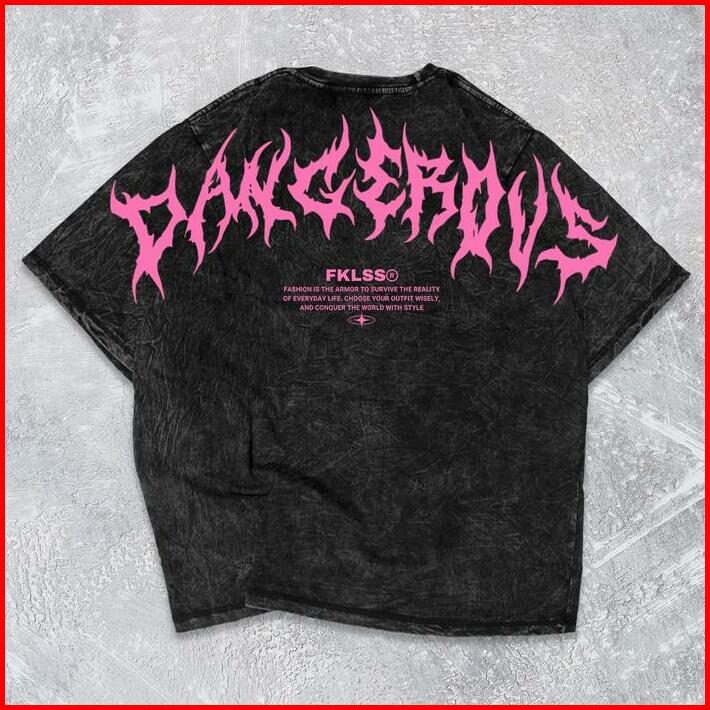 Fortklass Kaos Oversize Wash Dangerous Kaos Oversize Pria Lengan Pendek Atasan Tshirt Distro Cowok Kaos Pria Kaos Polos