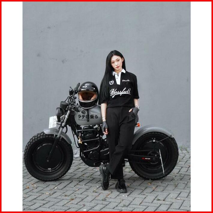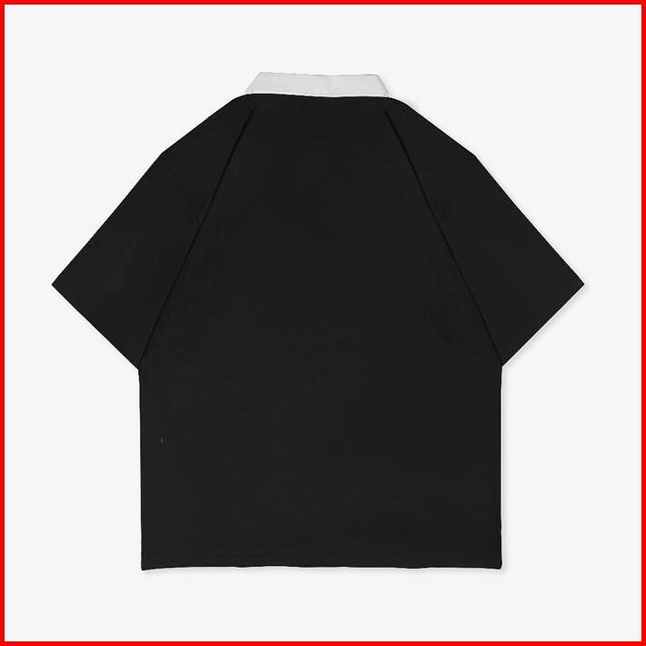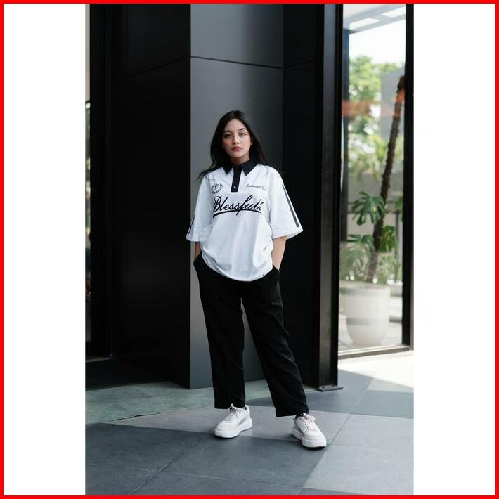 Ootdsupply Oversize Polo Shirt Blessful Black White Collar L Kaos Polo Pria Dan Wanita Ovz-ps014