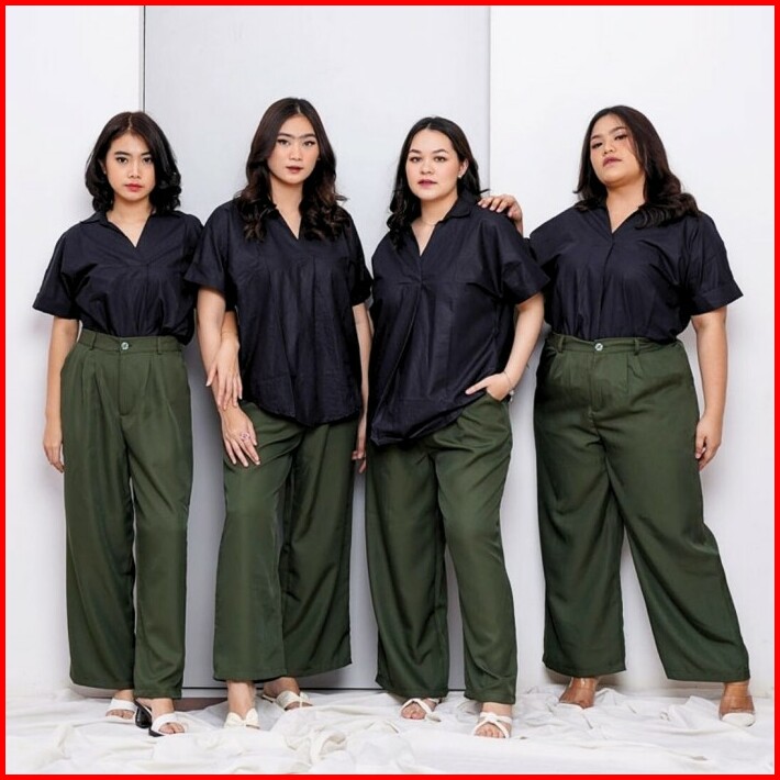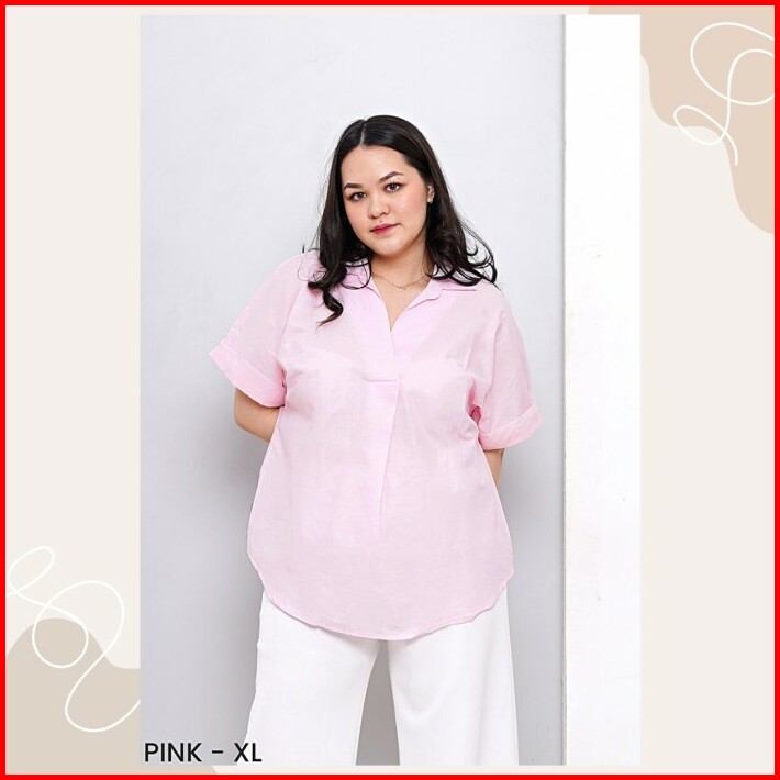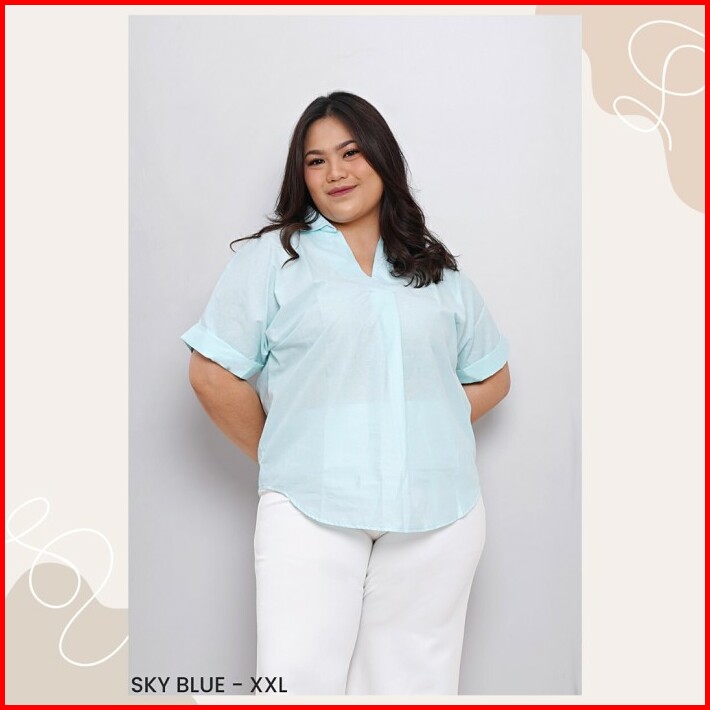 Kemeja Wanita Oversize Big Size Katun Polos Lengan Pendek Xl Xxl