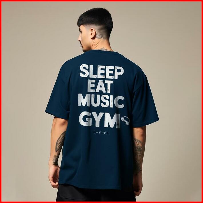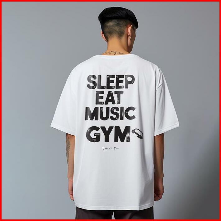 Kaos Oversize Gym Bahan Tebal Scuba Sleep Eat Music Gym Putih Mtu44 Hitam Mtu45 Navy Mtu46
