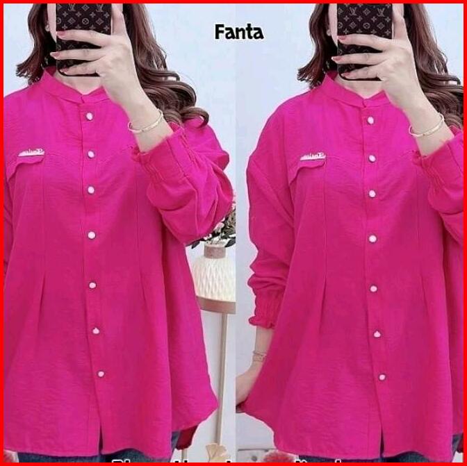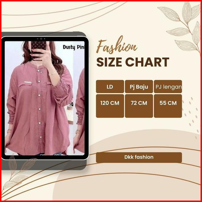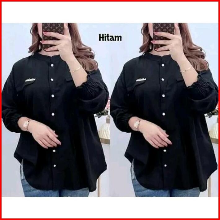 Salsa Shirt Kemeja Polo Linen Premium Atasan Wanita Jumbo Full Kancing Aktif Oversize Lengan Karet Baju Panjang Basic
