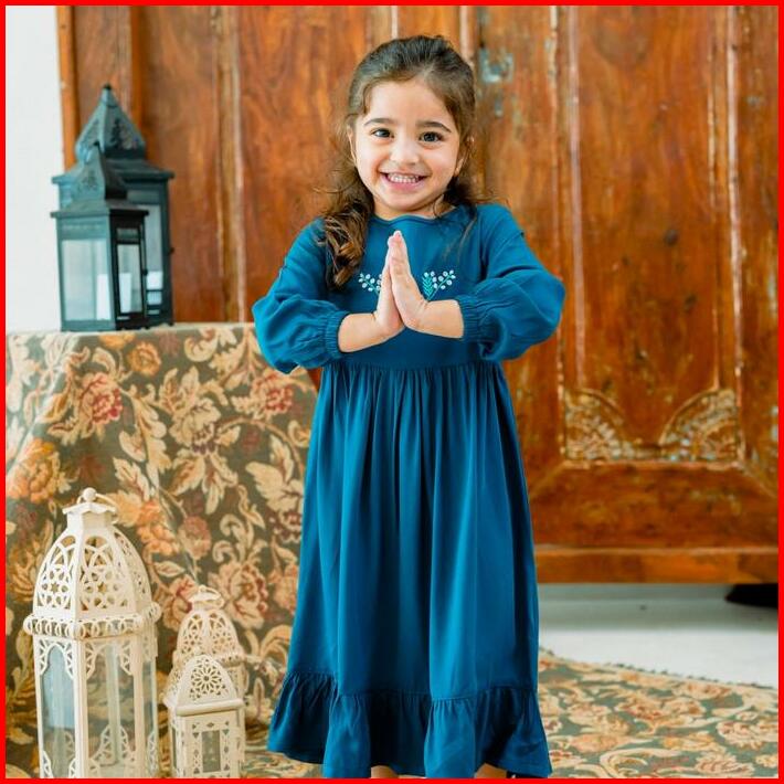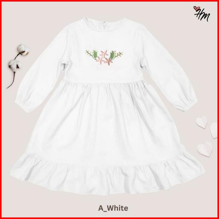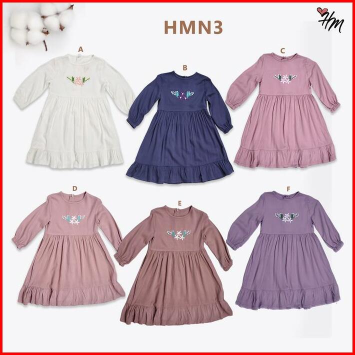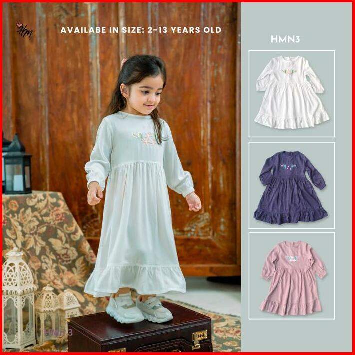 Hellomini 2-13t Soraya Dress Gamis Katun Bordir Anak Perempuan Baju Lebaran Muslim 2025 Hmn3