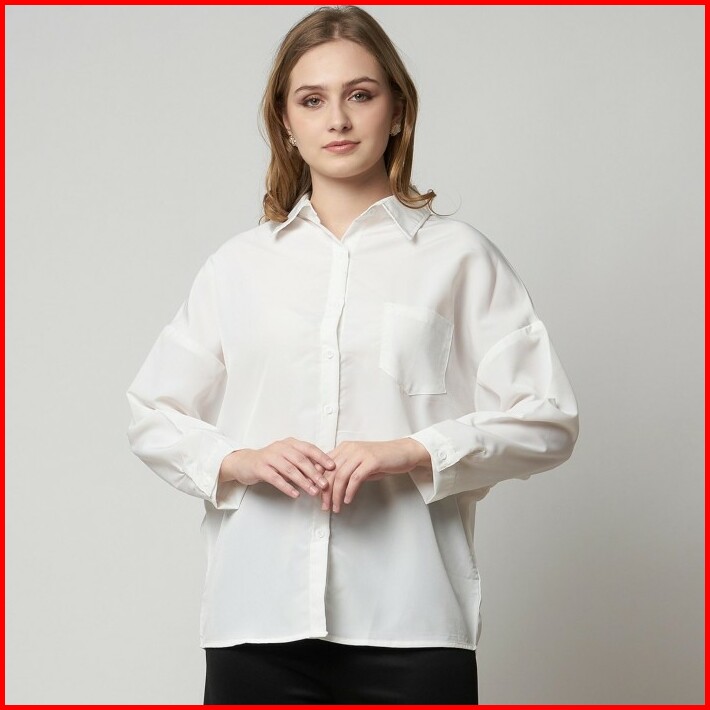 Monellina 601300 Kemeja Oversize Wanita Batwing Lengan Panjang Putih