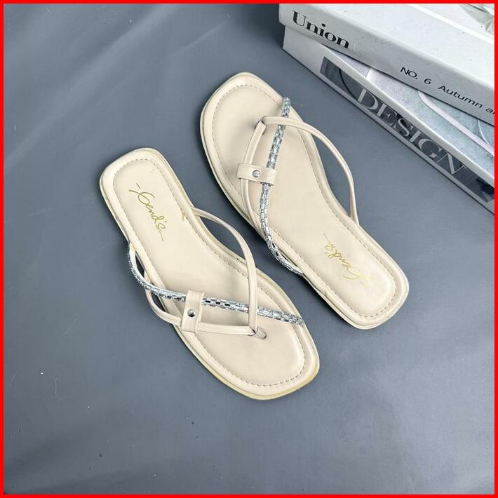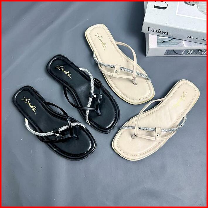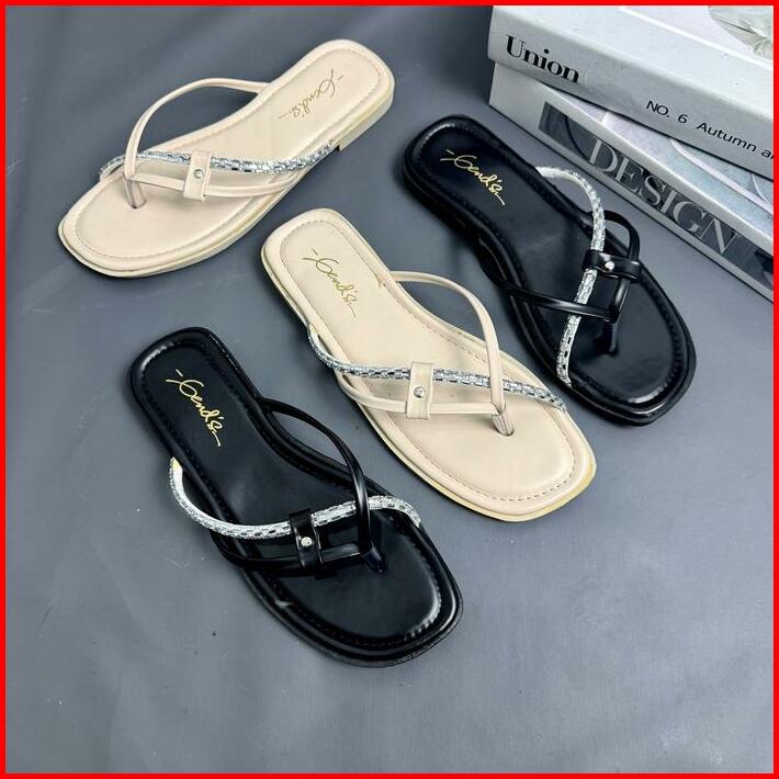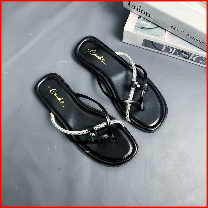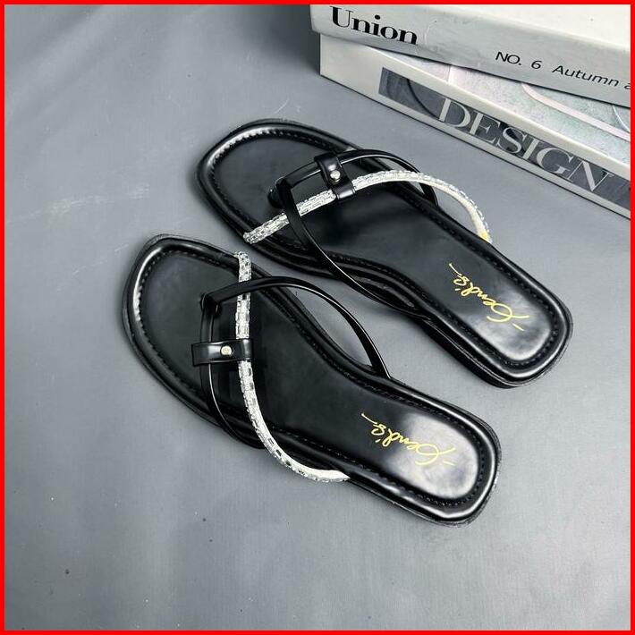 Sandal Teplek Wanita Sendal Jepit Permata Desain Kekinian Flat Cewek Sandal Jepit Permata Hitam