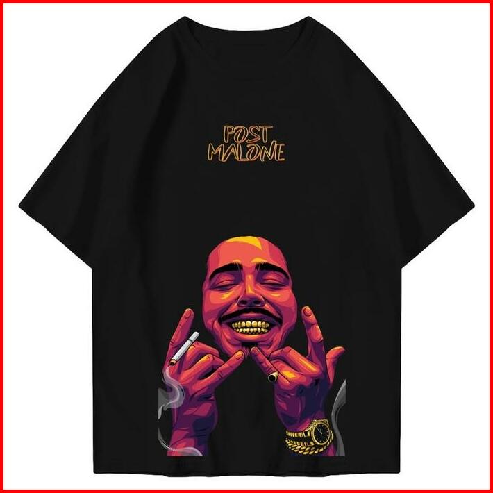 Hi Vaba Oversized Post Malone Tshirt Kaos Streetwear Unisex Tee Combed Pria Baju Distro Hitam Oversize Printing Panjang