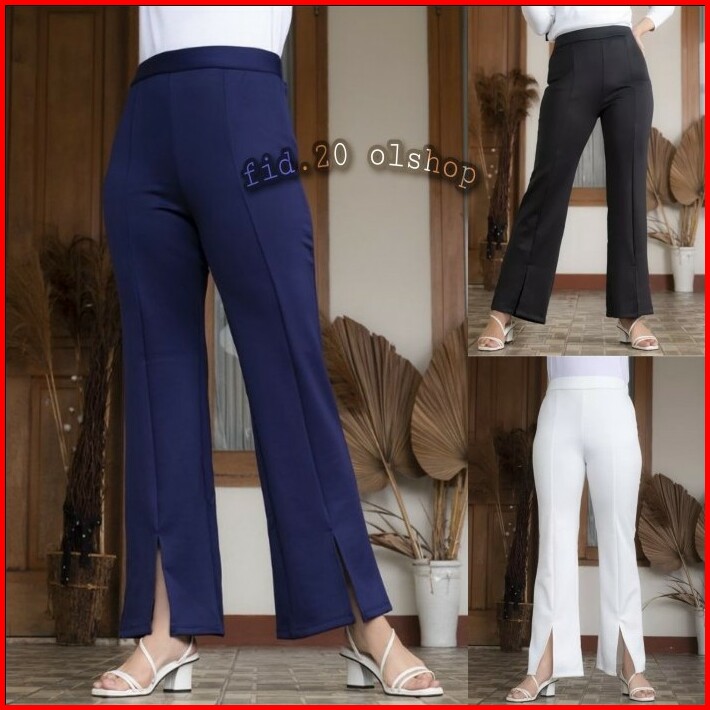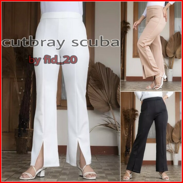 Celana Cutbray Wanita Bahan Scuba Cutbray Belah Split Highwaist