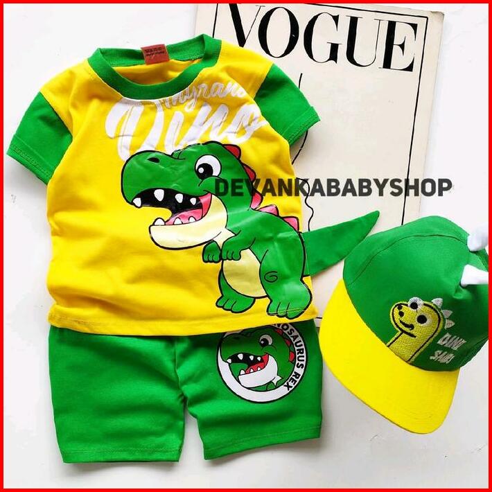 Baju Dino Anak Setelan Dinosaurus Anak Laki Laki Ada Topi Untuk Untuk Umur 1-10 Tahun Laki-laki Katun Perempuan Parsel