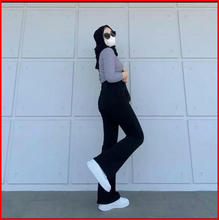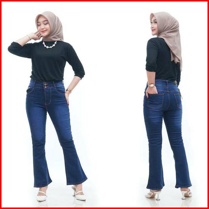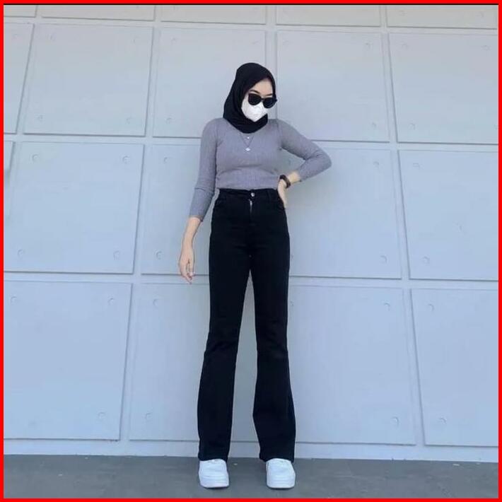 Cutbray Jeans Stretch Premium Highwaist Button 2 Jeans Tebal Big Size 27-42 Wanita Panjang Celana Hitam