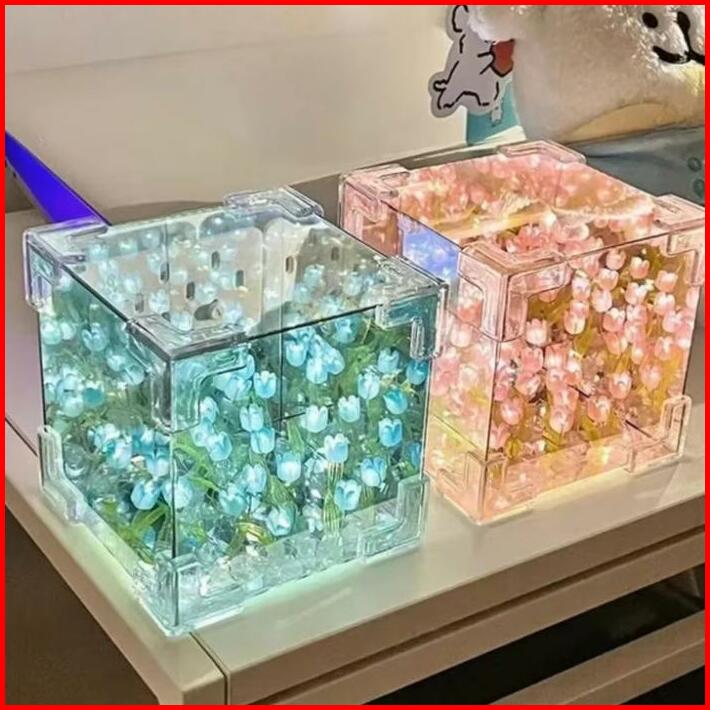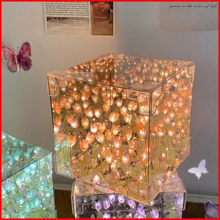 Cod21 Bunga Tulip Lampu Lampu Malam Led Cermin Lampu Tidur Kamar Tidur Ins Led Cermin Lampu Dekorasi Hadiah Ulang Tahunh