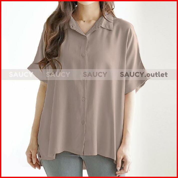 Kemeja Oversize Wanita Polos Lengan Pendek Casual Rayon Twill Shirt