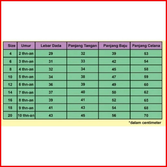 SIZE 1(3-9 BLN), SIZE 2(9-1 TH), SIZE 3(1TAHUN), SIZE 4(2TAHUN), SIZE 6(3 TAHUN), SIZE 8(4 TAHUN), SIZE 10(5 THN), SIZE 12(6THN)