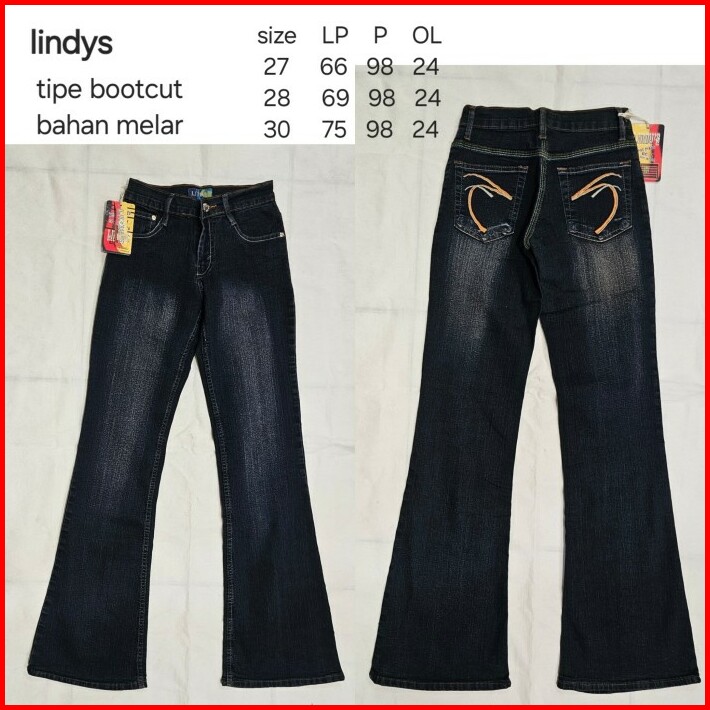 Celana Jeans Denim Wanita Cewe Bootcut Cutbray Biru Tua Washed Melar Stretch Murah Obral Size 28